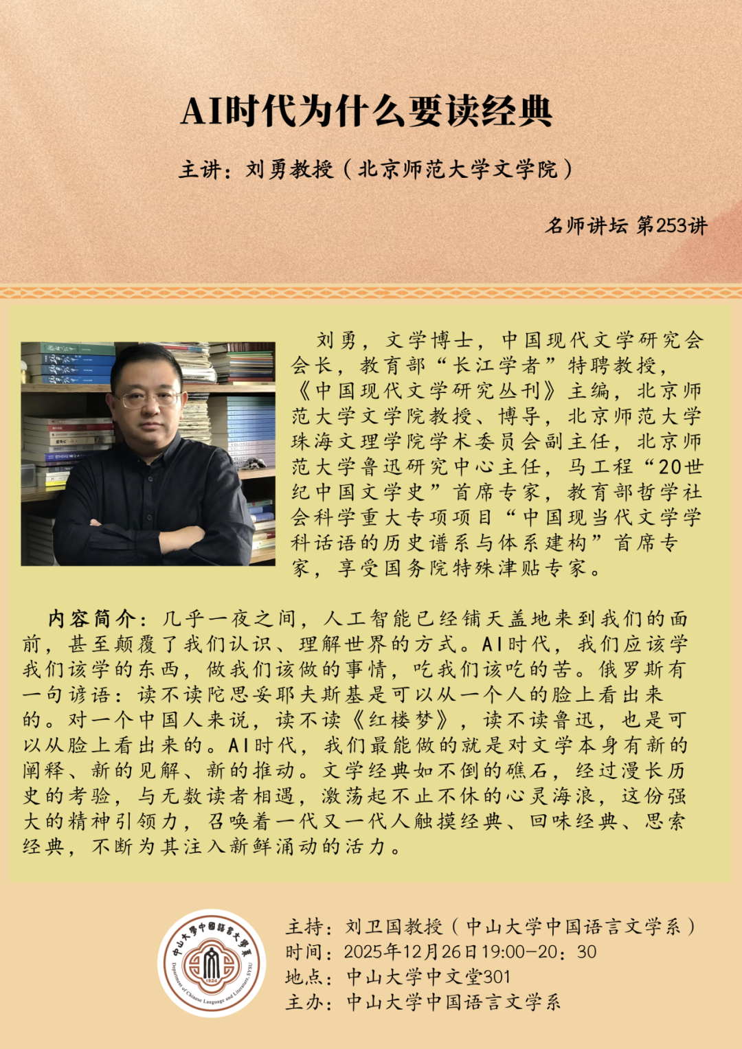 主讲人:刘勇(教育部“长江学者”特聘教授)