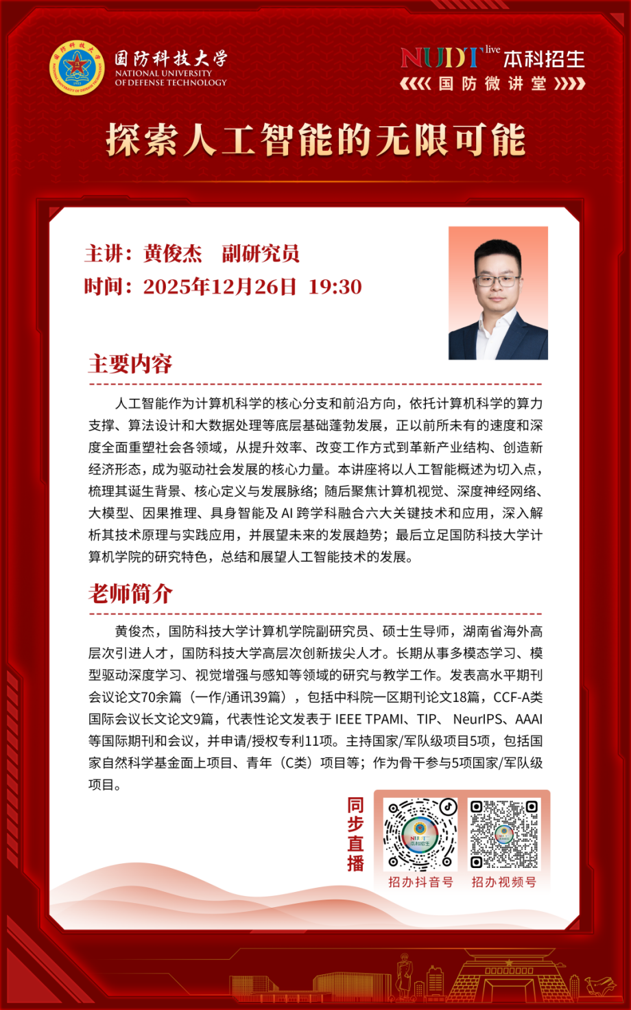 主讲人:黄俊杰(国防科技大学计算机学院副研究员)