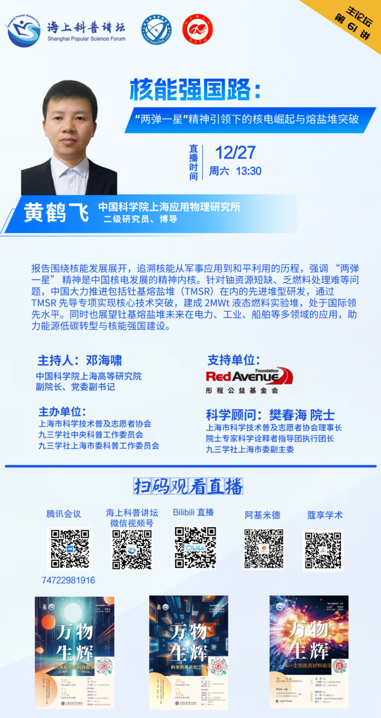 主讲人:黄鹤飞(中国科学院上海应用物理研究所二级研究员、博导)
