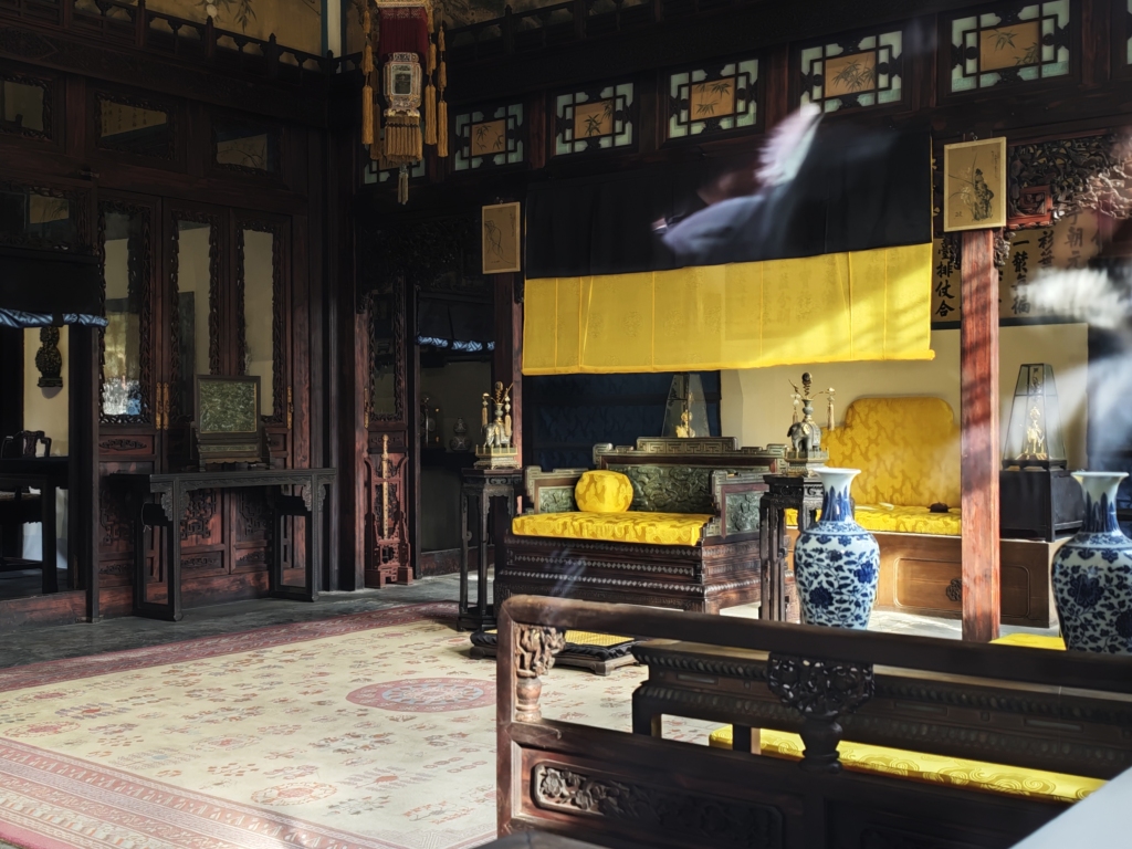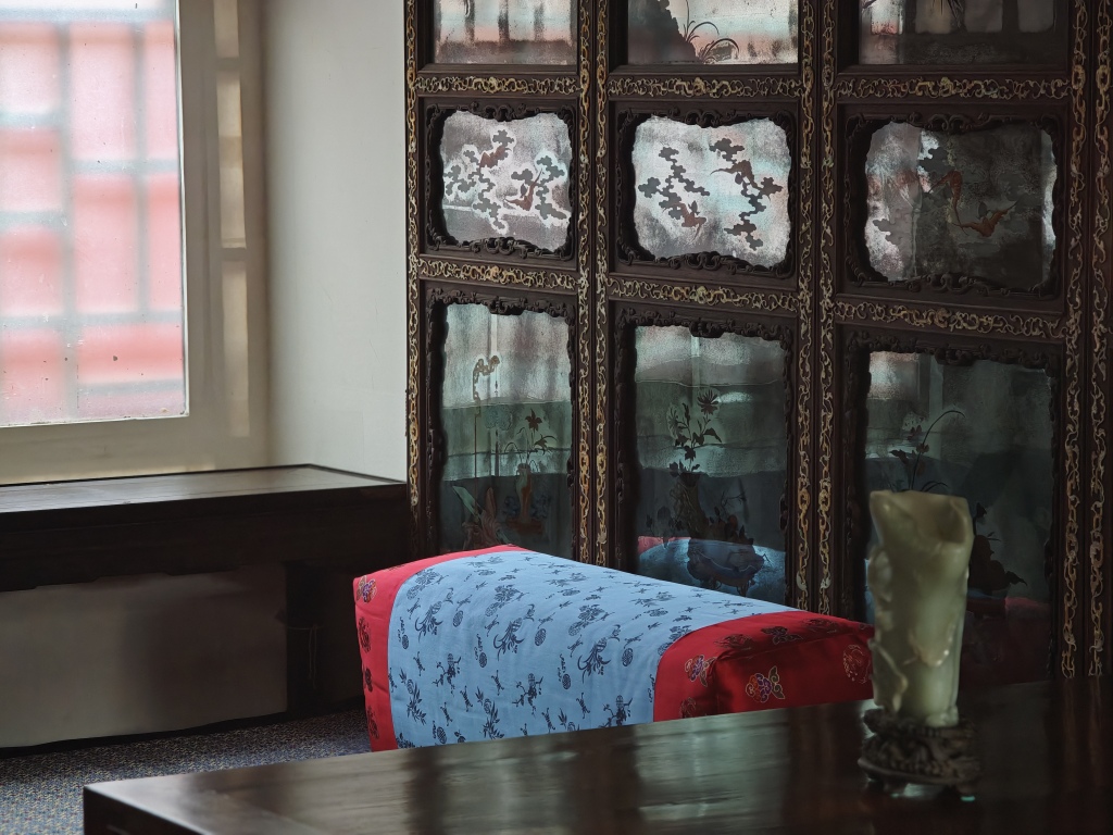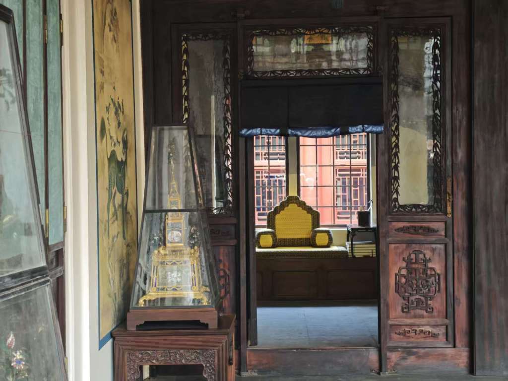 复陈的核心陈设围绕“垂帘听政”的特殊权力格局展开,精准还原了当时的政务场景。东侧设置皇太后(慈禧、慈安)所坐的炕,这一陈设象征着当时最高权力的实际掌控者;西侧则摆放着小皇帝(同治、光绪)的宝座,代表着皇权的名义拥有者。在两者之间设有一道隔帘,这一关键陈设直观体现了“垂帘听政”的权力运作方式——皇帝在前,太后在后,政务决策由太后通过帘子传递给皇帝执行。墙面部分则重现了清末时期的“白墙”状态,刻意区别于乾隆时期的装饰风格,更贴合晚清的历史原貌。