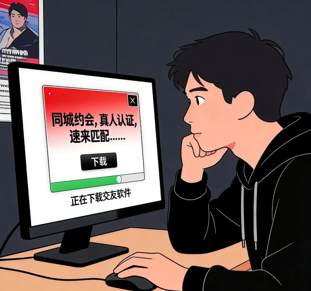 骗子利用短信、网络平台和交友软件等发送虚假链接、发布虚假“招嫖约炮 同城服务”的广告,等待受害人点击。