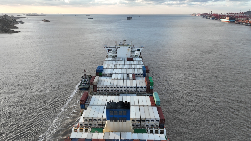 全国首船“樱桃快航”靠泊洋山港,春节前超20万吨车厘子通过直航班轮抵沪