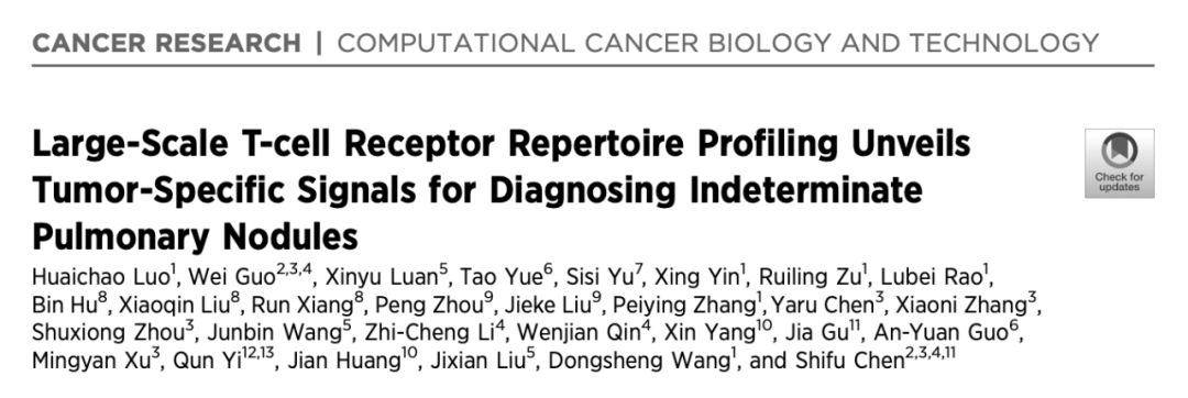 原标题:《Cancer Research:突破影像局限!AI+TCR组库技术,精准诊断肺结节》