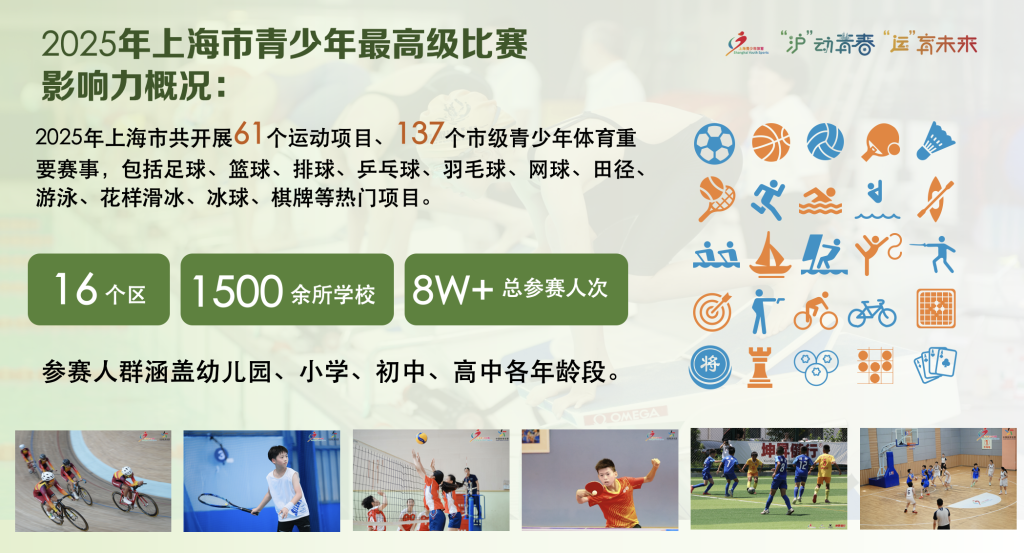 上海市少儿体育联赛则覆盖全年超百场的市场化、无门槛赛事,为青少年提供从“体验”到“持续参与”的路径,深度沉淀体育人口。