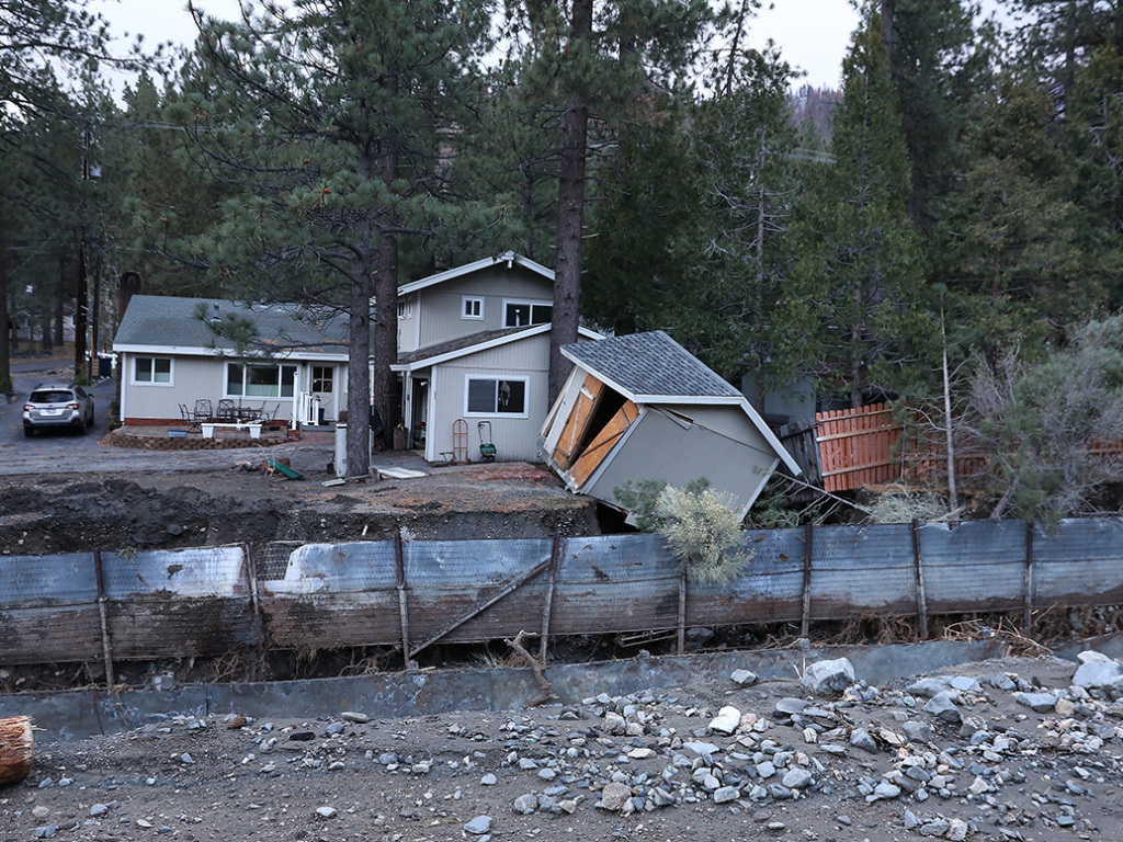 这是12月25日在美国加利福尼亚州圣贝纳迪诺县赖特伍德拍摄的一处受损建筑物。 新华社 图