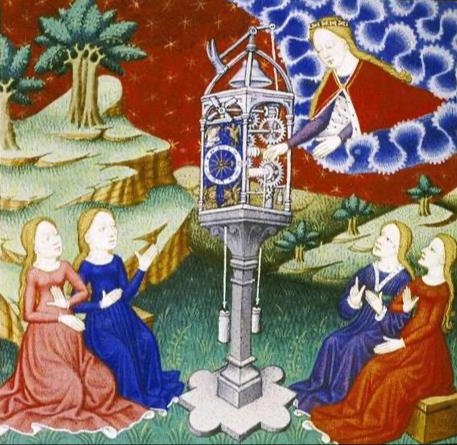 艺术和文学作品常常对时钟表达震惊,而非将其视为日常生活的一部分。精美的自动机械装置,使时钟成为一种壮观而生动的公共展品。时钟在当时的文化想象和历史中都占据了重要地位,它经常被转化为艺术品和寓言。像但丁和让·弗鲁瓦萨尔(Jean Froissart)这样的诗人从熟悉的时钟中汲取灵感,发展出一套描述人类经验的新词汇,涵盖了精神永恒、人类爱情、宇宙现象等诸多主题。