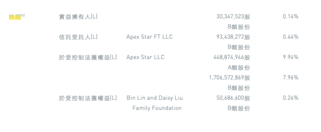 2025年中报显示,林斌持有18.81亿B类股和4.49亿A类股。