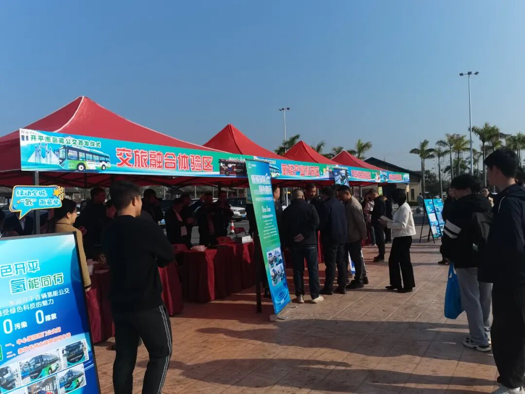 活动当天,还进行了氢能公交首发乘车体验环节,与会嘉宾和市民代表共同乘坐氢能公交,到赤坎华侨古镇,活动结合“畅游开平乐购侨乡”消费季活动,现场设置了氢能产业科普、氢能公交展示、开平优品展示、农文旅融合体验等环节,打造了一个可看、可感、可购的多元化的消费空间,展现了氢能应用场景带动地方特色经济发展的潜力。