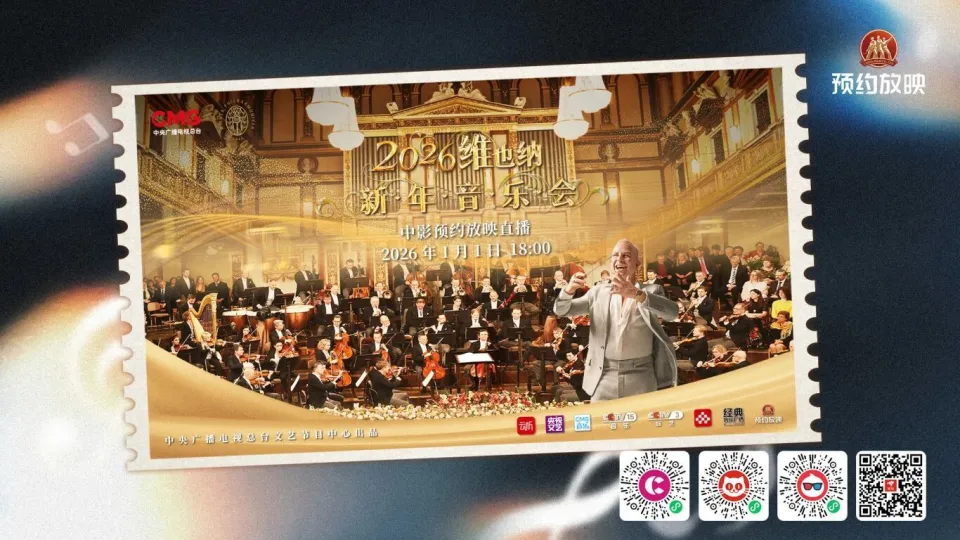 内容简介:一年一度的维也纳新年音乐会将于2026年1月1日在维也纳金色大厅举行。今年的音乐会由加拿大指挥大师雅尼克•涅杰-瑟贡执棒,他将带领维也纳爱乐乐团演绎十八首曲目,陪伴乐迷们共同开启新的一年。此次维也纳新年音乐会将在中影旗下院线以“预约放映”的方式提供100场影院同步直播放映,让观众在大银幕前聆听音乐之都传来的新年讯音。