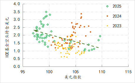 图1:对冲基金空头持仓美元与美元指数的变化情况