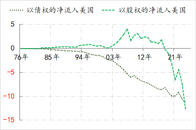 数据来源:美国经济分析局,注:净头寸负值表示非美资金流入美国。