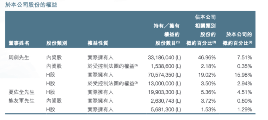 优必选2025年半年报显示,截至2025年6月30日,周剑作为实际拥有人直接持有3318.604万股内资股,占公司内资股总数的46.96%,占公司总股本的7.51%;同时直接持有7057.435万H股,占公司H股总数的19.02%,占公司总股本的15.98%。此外,周剑通过其持有73.96%合伙权益的深圳三次元企业管理咨询合伙企业(有限合伙)间接控制153.86万股内资股及1300万股H股,分别占公司内资股的2.18%、H股的3.50%,合计占公司总股本的3.29%。