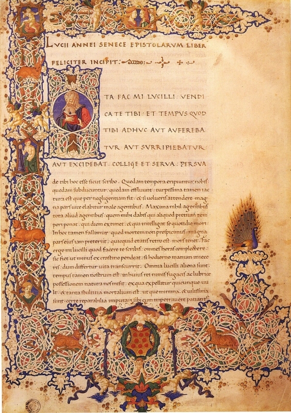 15世纪的《道德书简》手抄本,藏于意大利劳伦齐阿纳图书馆