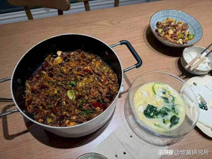 *小智爱人烹饪的青菜牛肉和虾仁豆腐汤(小智供图)