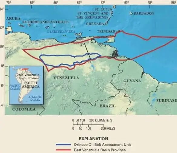 蓝线区域内的为奥利诺科石油带