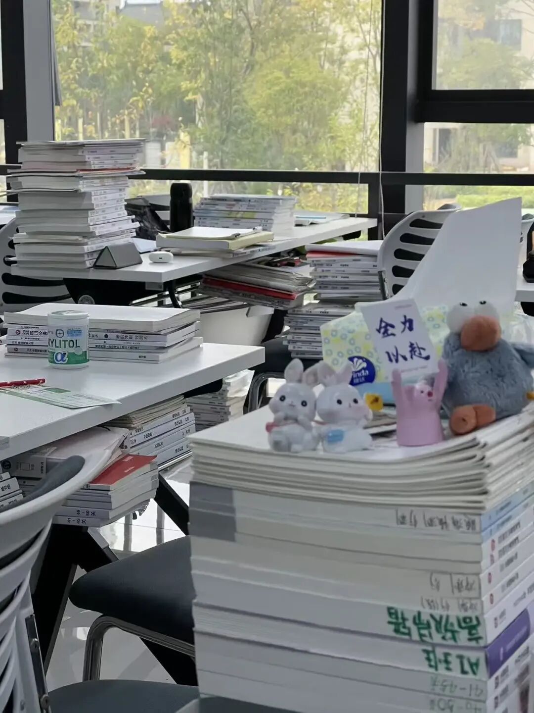 书一摞摞往上堆,“摞得越高越爽”。她买了施耐德和国誉的按动笔,作为做题的奖励,就像给自己装备“武器”。她刷完了7本练习册,做了十几套真题。专注软件记录了861小时的学习时长。