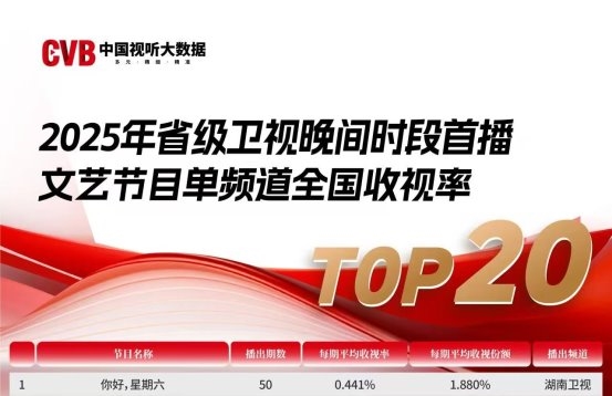 《你好,星期六》始终在探索综艺的长久生命力。2025 年的收视登顶,是秉持着初心,对“内容为王、观众为核心、价值为魂”理念的最好回报。它用创新玩法打破行业边界,用真诚互动凝聚观众情感,用正向价值点亮综艺市场,不仅稳稳拿下周末档收视第一,更给出了综艺如何保持长青的行业答案。未来,这份属于周六的快乐与陪伴,仍将继续温暖更多观众。