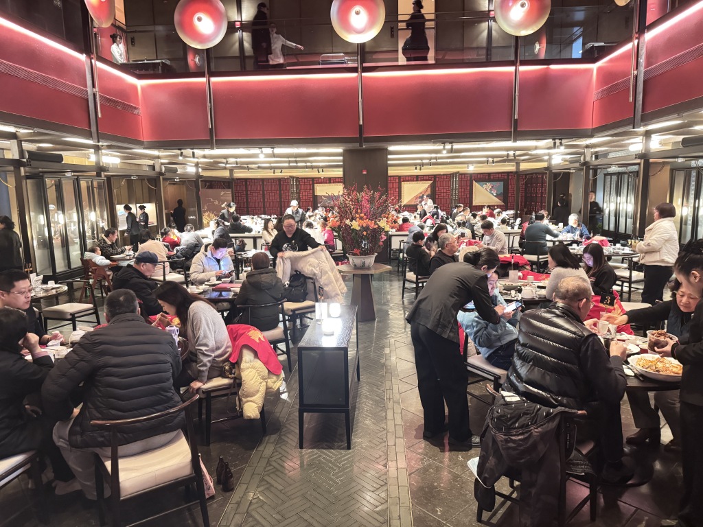 元旦当天中午,上海老饭店内升腾着热烈的烟火气,食客们一边热闹地聊天、一边品尝美食,迎接新的一年。