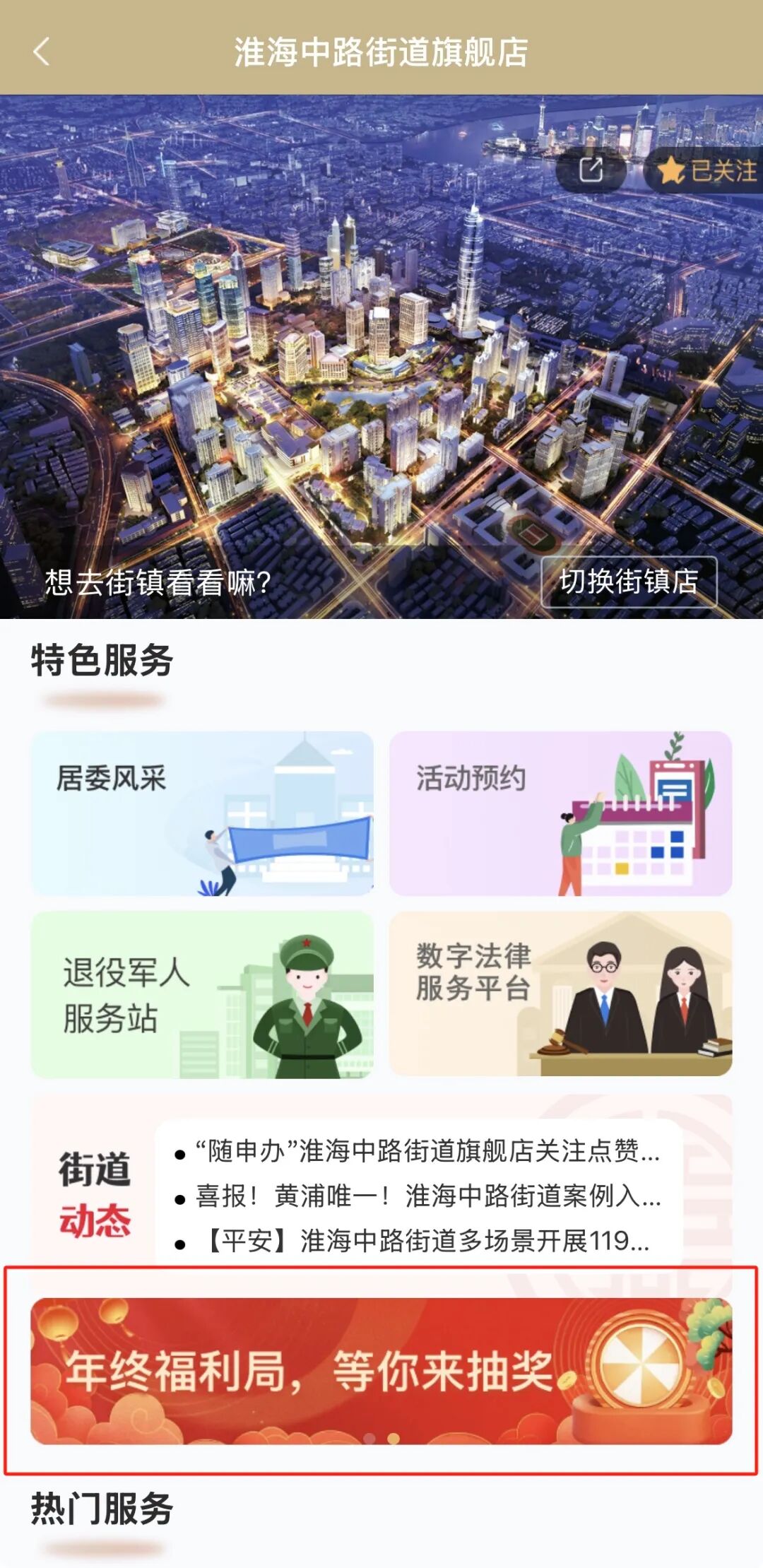 01、打开“随申办”APP,扫描活动二维码,直达“淮海中路街道旗舰店”。