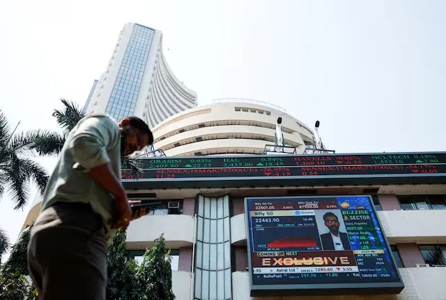 3月11日,一名男子走过孟买证券交易所大楼外。 路透社