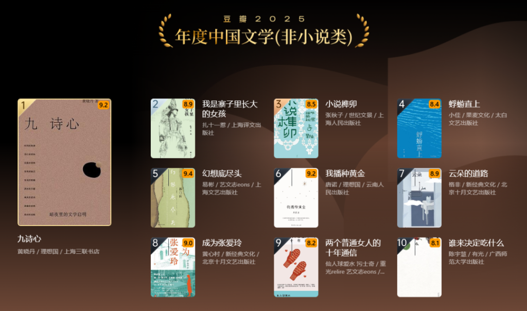 “2025年度中国文学(非小说类)”,《九诗心》排名第一