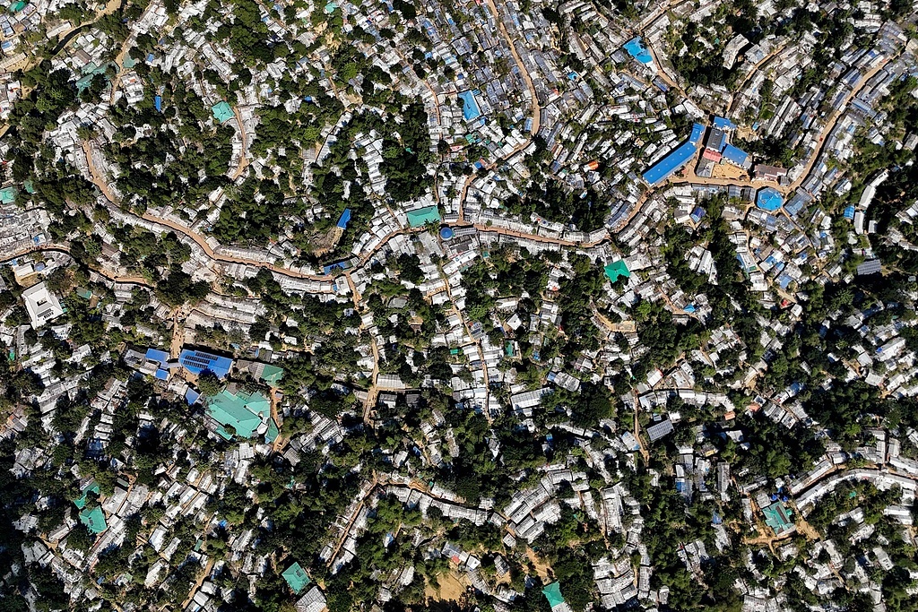 当地时间2025年12月21日,孟加拉国乌希亚,库图帕隆难民营的空中俯视图。视觉中国 图