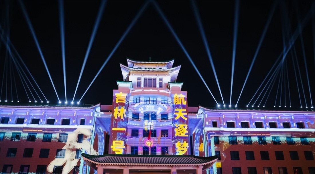 随后,第二篇章“长春城市名片”以充满科技感的节奏接续叙事。和谐号高铁从像素矩阵中“驶出”时,人群中响起一片惊叹;当“吉林一号”卫星悬浮在楼体中央,与宇航员全息影像交相辉映,不少孩子兴奋地指着画面;红旗车生产线的光影流转、长影经典影片画面重现,唤起了许多老长春人的记忆。