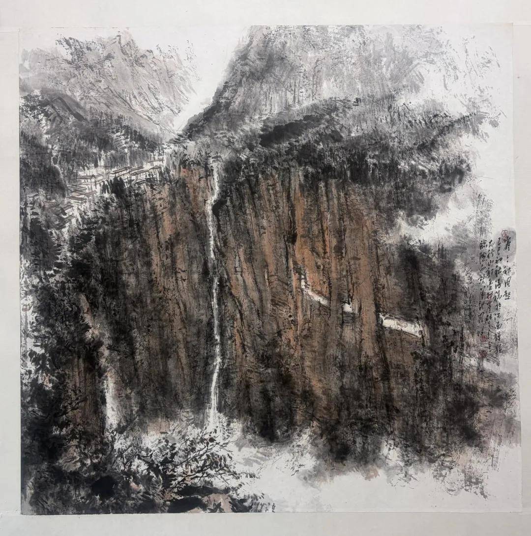 太行深秋,霜色入墨。当我展纸临崖,试图用笔墨收摄这一山一魄时,笔锋竟在砚边迟疑了——这莽莽苍苍的赤壁丹崖,这嵌在绝壁上的村庄与公路,早已超越了传统山水画的程式,它要求一种新的笔意,一种能凿穿纸背的力道。