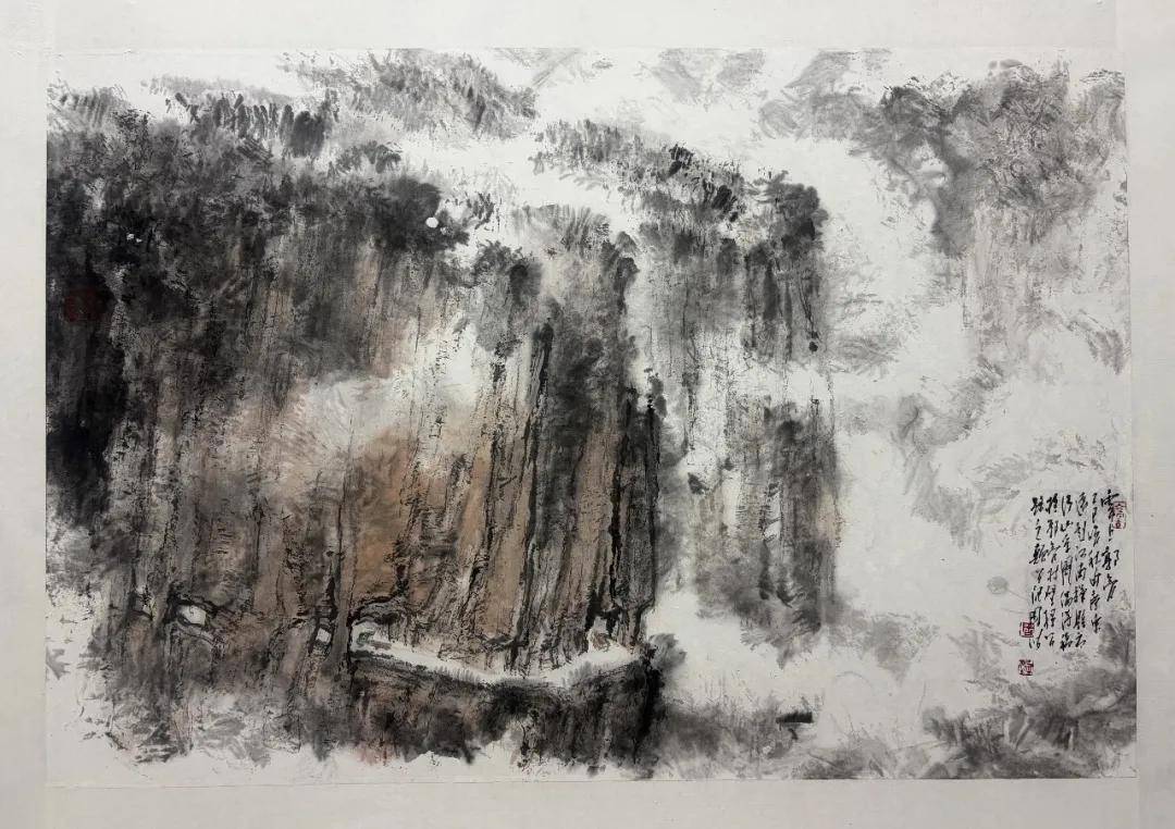 在崖边写生三日,渐渐懂得郭熙“身即山川而取之”的真意。我不是在画山,而是在记录一场对话:毛笔的提按顿挫,对应着钢钎的凿击;墨色的浓淡干湿,呼应着晨昏的光影流转。当我画到那十三位凿路者的纪念处时,下意识地换用了最粗的狼毫,笔杆抵在掌心有如握钎。那一刻,笔不再是文人雅玩,而是开山的工具;墨不再是烟云供养,而是浸透汗水的碑铭。