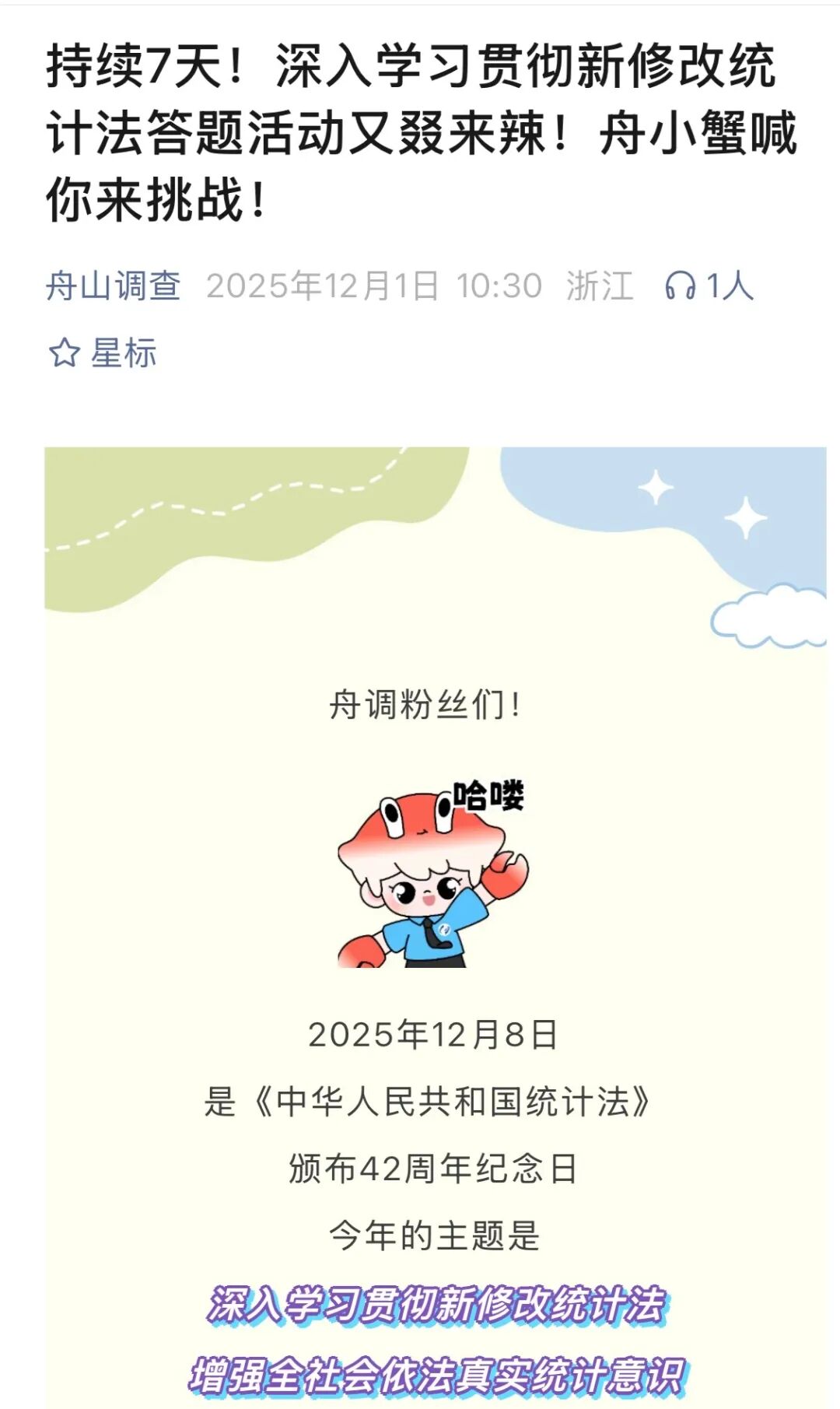 他们利用“9.20”中国统计开放日、“12·8”统计法颁布纪念日等节点,推动诚信诚实、依法统计,防治统计造假、弄虚作假持续巩固。