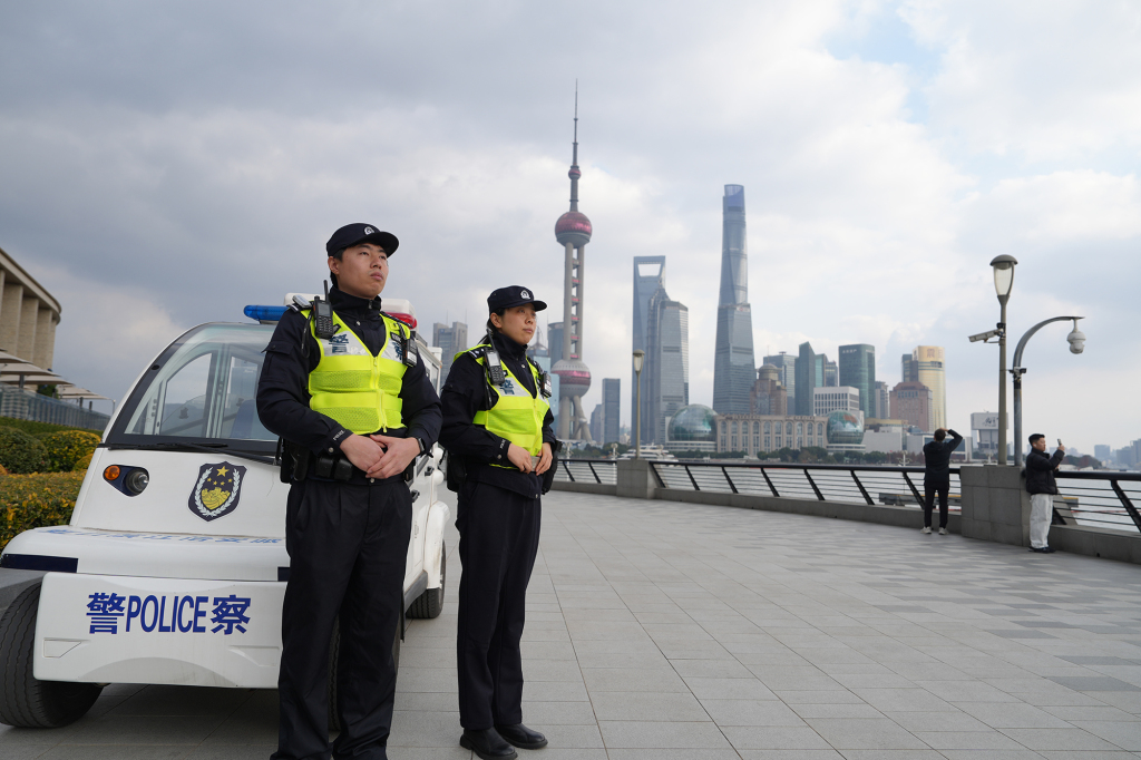 上海市公安局虹口分局特警支队民警在北外滩世纪同框平台开展巡逻驻守。 上海市公安局供图