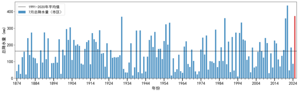 5、台风带来大暴雨,7月总雨量跻身历史次多