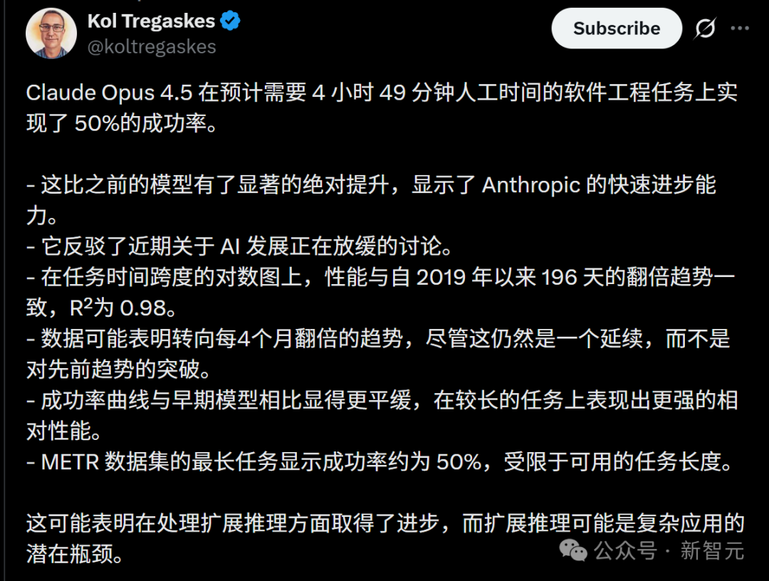 Opus 4.5的轨迹表明,它的性能提升正在加速。