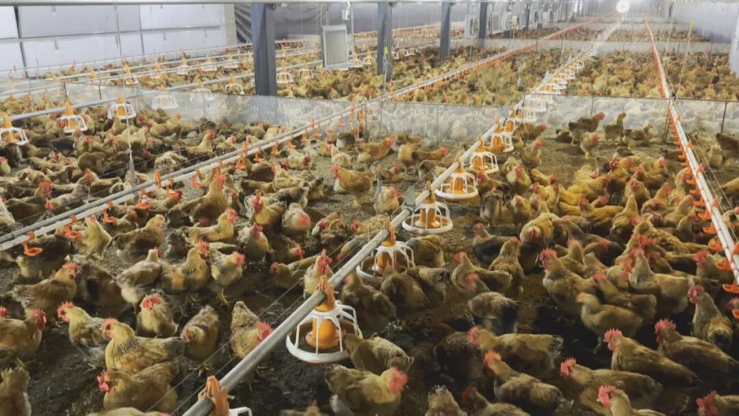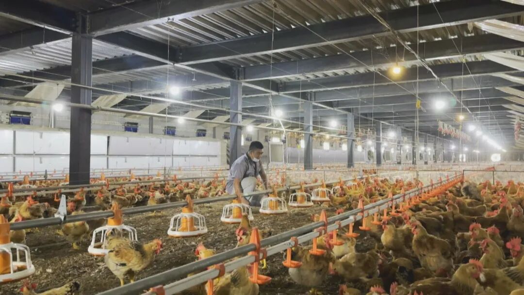 “以前我们也是在广东做养殖的,然后回来了,就听到我们立华公司到我们县来入驻,跟立华合作,我们过来立华养鸡,也是得到了立华的领导、技术员全方位支撑,从鸡苗到饲料到销售,这个我们很省心,所以我在那边养一个棚,就见到有点效益了,然后我来这边就扩大到两个,这样的话,一年下来能有个20来万收入。”养殖户杨飞说道。