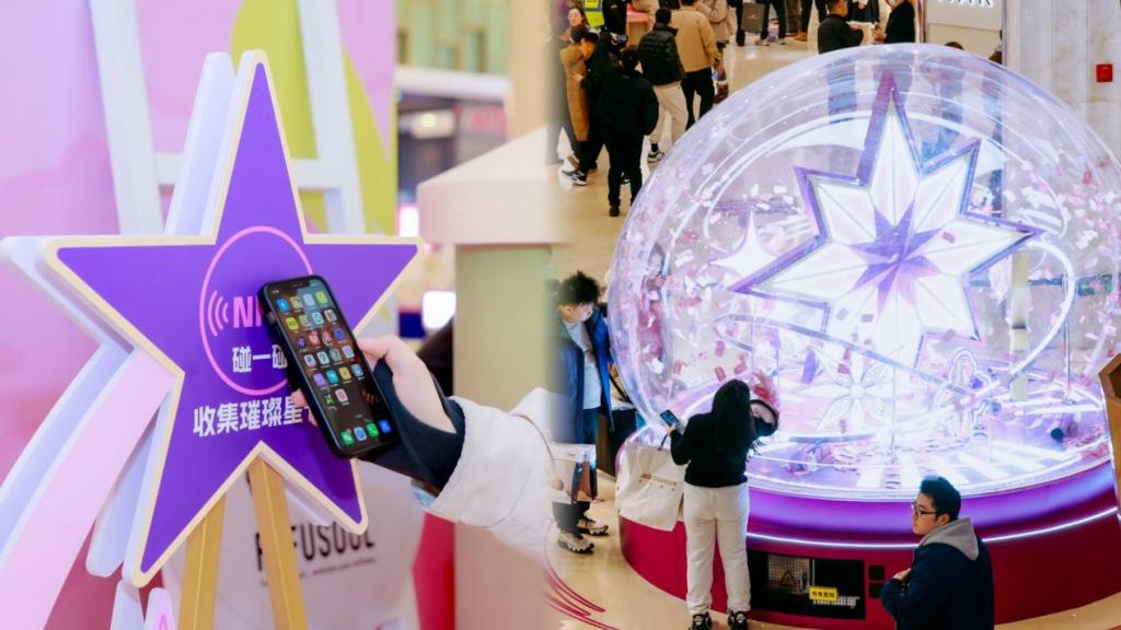 第一八佰伴跨年现场,顾客可以将手伸进“水晶球”抽自己的礼物。 受访者供图