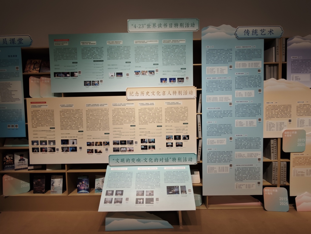 为纪念国图公开课创办十周年,国家图书馆官网发布专题页面,集中展示十年来课程资源建设成果。国家图书馆还对国图公开课读者签到大厅进行升级改造,使其成为集展示、体验、学习、分享于一体的读者空间,通过线上线下不同方式,努力为读者提供新的服务和新的体验。