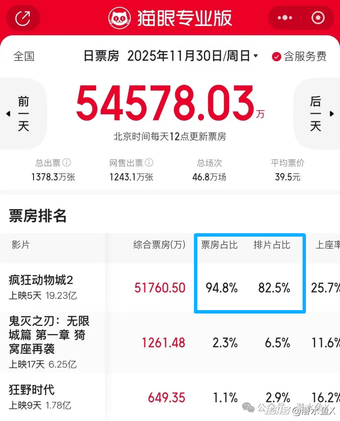 充分意识到这点的影院老板们,到《疯狂动物城2》上映时已经顾不得“平衡排片”了,落袋为安才是最重要的,给到该片黄金时段的排片量一度接近8成,这是《哪吒2》都没有过的待遇。而这种现象,势必会在未来成为常态:电影市场会形成少数头部玩家赢家通吃的局面,中腰部的电影想大爆将越来越难。