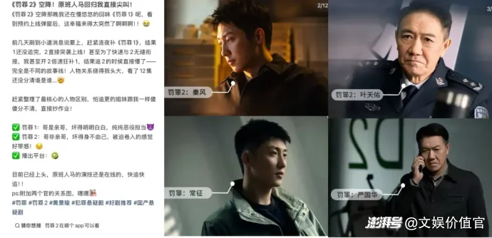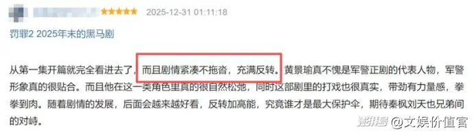 《罚罪2》上线后,观众口碑集中在剧集的强情节、大胆的主题表达、鲜明的正反势力对抗,将剧集与打击恶势力议题强关联,快速建立起“年底重磅大剧”的核心感知。