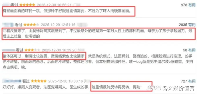 在文娱价值官看来,这背后是近两年来“悬疑+”创作风潮的渐趋成熟,当悬疑与纪实刑侦、犯罪动作、地域文化等深度融合,当它既能满足观众对智斗交锋的快感追求,又能通过纪实表达与社会议题承载,回应其对公平正义的情感期待,对人性探索的猎奇之心,在受众规模与公众关注度上的屡屡破圈,就是水到渠成之事了。