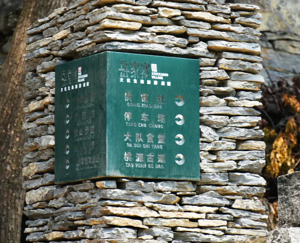 岳先来曾经的决定,让岳家寨成为保存较为完整的以石头建筑为特色的传统古村落。在接近山顶处,用石头堆砌而成的石头屋、四合院沿山势分布,墙是石头墙,顶是石板顶,中间用石头路和石头阶梯串联,形成了高低错落的石头寨子。峰回路转之时,突然看见远处山顶,有这样一座不同于常见民居的石头寨子,的确仿若走进了遗世独立的“世外桃源”。这是岳家寨发展旅游业的独特优势,游客们也许都想一睹这“世外桃源”的真容。