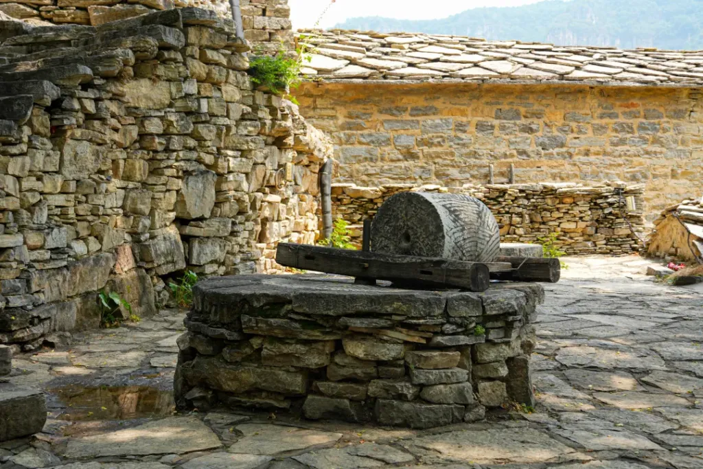 四临绝壁,云雾缭绕。石墙石瓦的民居错落层叠,和悬山群峰相映,与苍崖相嵌千年。