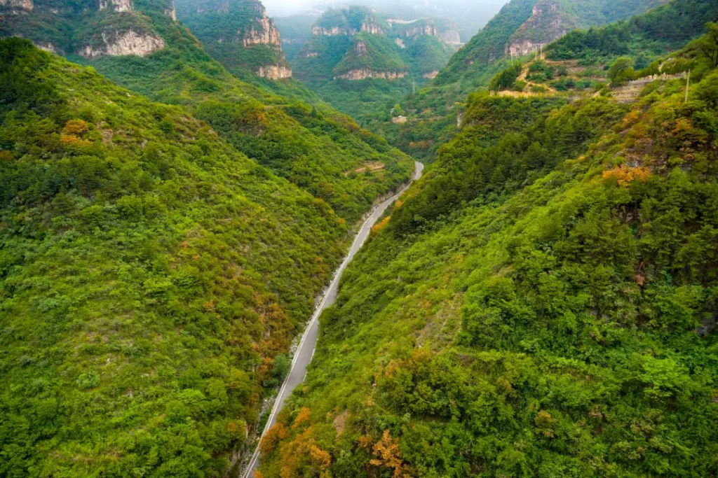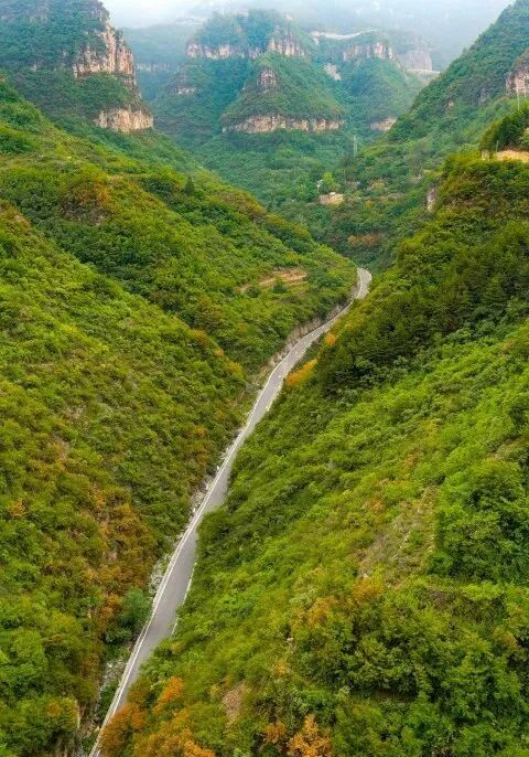望向窗外,太行山脉铺陈着它的气势。裸露的岩壁是红黄交杂,被植被包裹的部分则是密密麻麻的绿色。这条公路虽陡峭,但景色绝佳,崖壁险峻。我们盘旋而上,逐渐接近它的尽头。