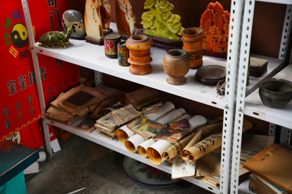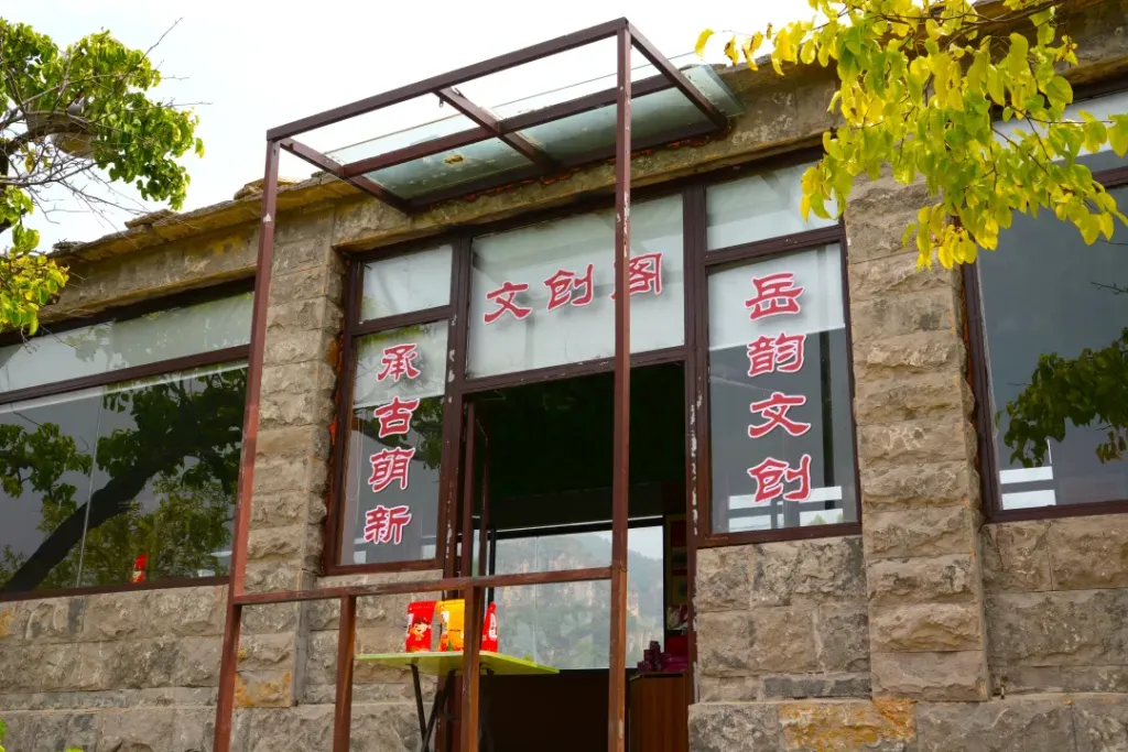 古玩文创店的老板在岳家寨生活了一辈子,因为喜欢收藏,在很早之前便在村中的千年大榔树旁开了家古玩店,现在搬迁到供销社对面,未来计划改造成岳飞文化博物馆。老板有空时便会下乡,到各户百姓家中收些以前各个朝代留下来的民间或官用古玩。老板将收藏的古玩陈列在店内的木架、桌柜中,等待有共同收藏爱好的有缘人将这些东西买走。往昔,这里的生意颇为冷清,直至旅游业在这片土地上蓬勃兴起,游客络绎不绝,生意这才渐渐回暖,足以支撑起家计,满足基本的温饱需求。