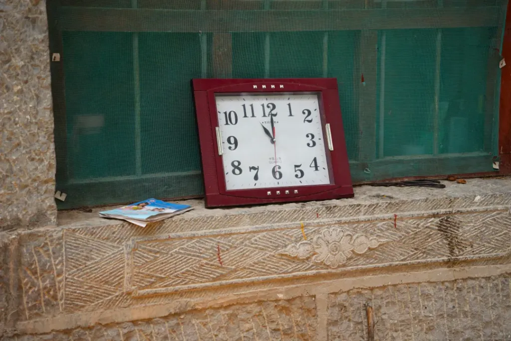 静止的时钟——我们走进村庄时,在路边土特产店的窗台上看见了一个时钟。时针、分针、秒针,都静止了。