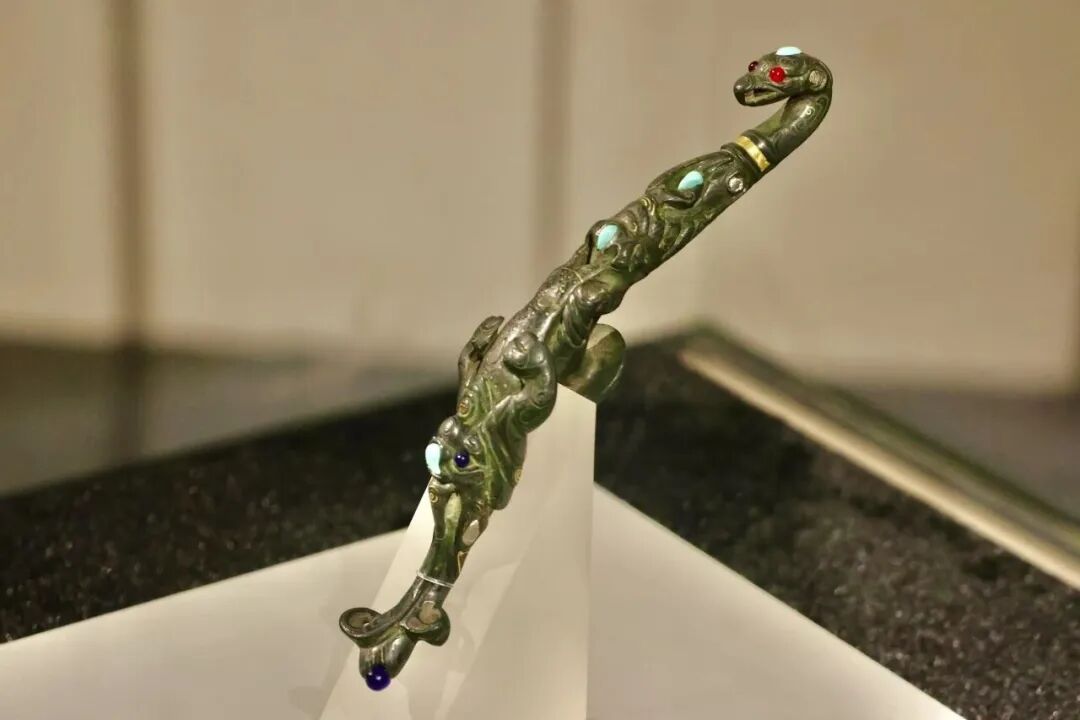 走进馆内,更是人头攒动。镇馆之宝汉错金银“丙午神钩”铜带钩被围得水泄不通。“这也太精致了吧!”“古人的手艺绝了!”赞叹声此起彼伏。