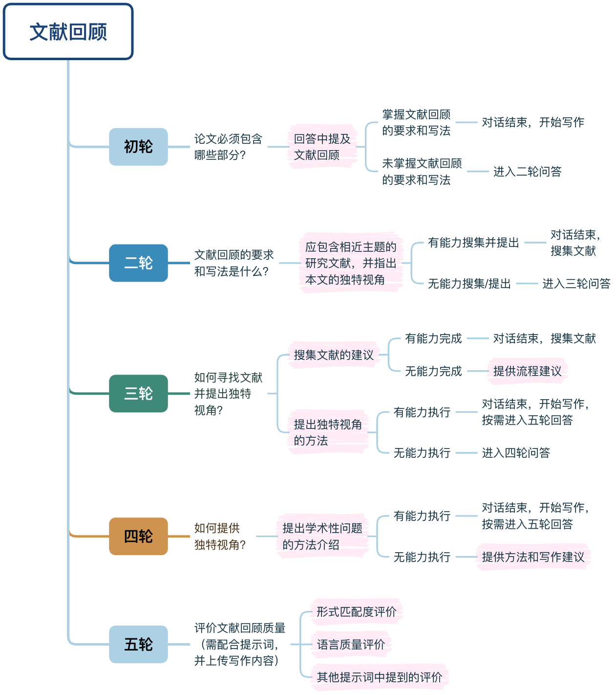 图5:逐步获得有关“文献回顾”的信息、要求、步骤和质量评价的示例问答