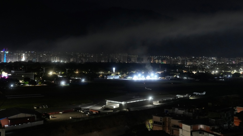 1月3日,委内瑞拉首都加拉加斯拉卡洛塔机场升起浓烟。新华社 图