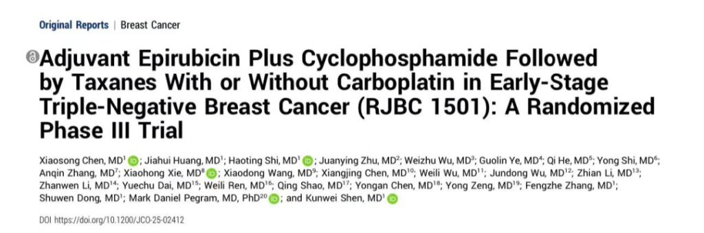 上述研究在国际顶级肿瘤学期刊Journal of Clinical Oncology发表后,评审专家指出,这项由中国学者主导的研究,填补了全球早期三阴性乳腺癌辅助治疗领域的关键空白,首次明确了铂类药物在早期三阴性乳腺癌辅助治疗中的地位,有望改写早期三阴性乳腺癌的治疗格局,为全球临床实践指南提供了坚实的临床数据。