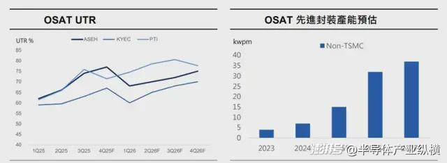 OSAT 端的CoWoS 扩产将在2026 年进入成长加速期。日月光投控的先进封装产能预计将由2025 年底的5 Kwpm,快速成长至2026 年底的20 Kwpm。