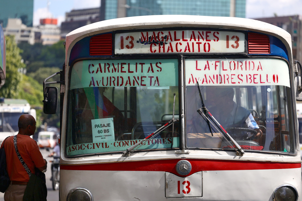 1月5日,委内瑞拉加拉加斯,一名男子在等候公共交通。视觉中国 图